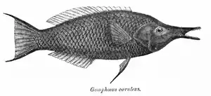 - Gomphosus caeruleus in FishBase,