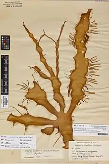 - Chapman, V.J. & Parkinson, P.G. 1974. Issue 3: Cryptonemiales. In: The marine algae of New Zealand. Part III. Rhodophyceae. (Chapman, V.J. Eds), pp. 155–278. Lehre: J. Cramer. Reference page. : 249, fig. 72