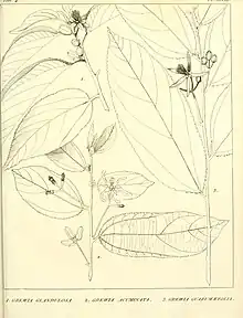 - Grewia ulmifolia Bojer in Procès-Verbaux Soc. Hist. Nat. l'Ile Maurice 1842-1845: 26 (1846), nom. illeg.