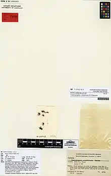 - Type: E.Y. Dawson 3770; Jan. 9, 1947. On surf-beaten granitic rocky headland just north of the lighthouse. Herb. Beaudette Foundation. Isotypes: Herb. Univ. California, Herb. A. Hancock Foundation, U.S. National Herbarium.