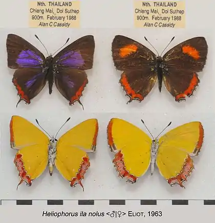 - Riley, N.D., 1929. Revisional Notes on the Genus Heliophorus (Lycaenidae) with Descriptions of New Forms. Journal of the Bombay Natural History Society 33: 384-402, 28 text figs. BHL. Reference page.