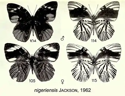 - Hewitsonia boisduvalii nigrescens [sic] Jackson; Ackery, et al., 1995: 532. Mis-spelling of nigeriensis.