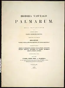 - Martius, C.F.P. 1823−1850. Historia naturalis palmarum. Vol. 1. 198 pp. 23 lam. Lipsiae. BHL Reference page.