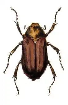 - Schoolmeesters, P. 2017. Scarabs: World Scarabaeidae Database (version Jul 2016). In: Roskov Y., Abucay L., Orrell T., Nicolson D., Bailly N., Kirk P., Bourgoin T., DeWalt R.E., Decock W., De Wever A., Nieukerken E. van, Zarucchi J., Penev L., eds. 2017. Species 2000 & ITIS Catalogue of Life, 30th January 2017. Digital resource at www.catalogueoflife.org/col. Species 2000: Naturalis, Leiden, the Netherlands. ISSN 2405-8858. Reference page. [accessed on March 15, 2017]