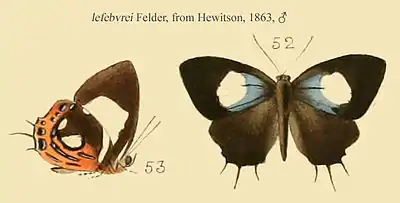 - Myrina lefebvrei C. & R. Felder, 1862: 291; Hewitson, 1863: 35, pl.16 figs 52,53.