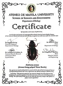 - Freitag, H. 2013: Hydraena (Hydraenopsis) ateneo, new species (Coleoptera, Hydraenidae) and other aquatic Polyphaga from a small habitat patch in a highly urbanized landscape of Metro Manila, Philippines. ZooKeys, 329: 9–21. DOI: 10.3897/zookeys.329.5955 Reference page.