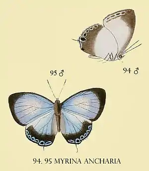 - Myrina ancharia Hewitson, 1869: 8, pl. 6, figs 94,95.
