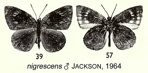 - Phytala nigrescens Jackson, 1964: 67, pls 3,4 figs 39,57; Stempffer, 1967: 85.