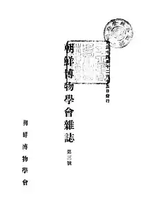 - Title: Journal of Chosen Natural History Society (Chōsen Hakubutsu Gakkai zasshi) 日本語: 朝鮮博物學會雜誌한국어: 조선박물학회