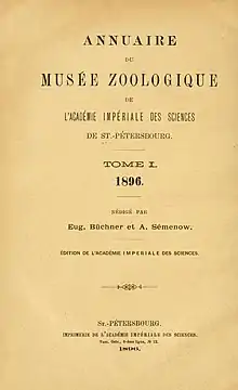 - Series title: Annuaire du Musée zoologique de l'Académie impériale des sciences de St.-Pétersbourg (1896–1916)