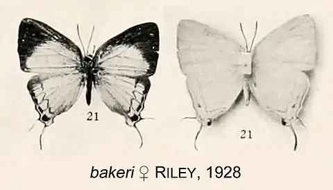 - Iolaus bakeri Riley, 1928: 388, pls 10,11 fig.21.