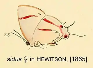- Iolaus sidus Trimen, 1864: 176; Hewitson, [1865]: 41, pl.20, fig 25 ♀.