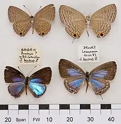 - Riley, N. D. & Corbet, A. S., 1938. A Revision of the Malayan Species of Jamides Hübner (Lepidoptera: Lycaenidae). Trans. R. ent. Soc. London 87(5): 147–159.