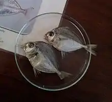- Chakrabarty, P. & Sparks, J.S., 2008: Diagnoses for Leiognathus Lacepède 1802, Equula Cuvier 1815, Equulites Fowler 1904, Eubleekeria Fowler 1904, and a new ponyfish genus (Teleostei, Leiognathidae). American Museum novitates, (3623)