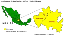 - Korotkova, N. et al. 2021. Lophophora diffusa in Cactaceae at Caryophyllales.org. A global synthesis of species diversity in the angiosperm order Caryophyllales. Published online. Accessed: 2021 Nov 16. Reference page.