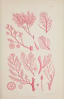 - Agardh, J.G. 1890. Till algernes systematik. Nya bidrag. (Sjette afdelningen). Lunds Universitets Års-Skrift, Andra Afdelningen, Kongl. Fysiografiska Sällskapets i Lund Handlingar 26(3): 1–125, 3 plates. BHL Reference page. : 59