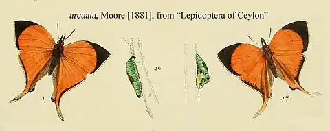 - Loxura arcuata Moore, [1881]: 111, pl. 42, figs 4, 4a-b; de Nicéville, 1890: 437.