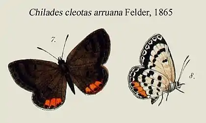 - Chilades laius arruana (C. & R. Felder); Fruhstorfer, 1916f: 93.