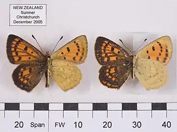 - Craw, R.C. 1975: Seasonal distribution, habitat selection, population structure and adult behaviour in New Zealand Lycaena (Lepidoptera: Lycaenidae). New Zealand journal of zoology, 2: 51–62. BUGZ