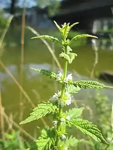 English: gypsywort, gipsywort, bugleweed, European bugleweed, water horehound
