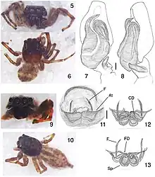- Ali, P.A., Maddison, W.P., Zahid, M. & Butt, A. 2018. New chrysilline and aelurilline jumping spiders from Pakistan (Araneae, Salticidae). ZooKeys 783: 1–15. DOI: 10.3897/zookeys.783.21985 Reference page.