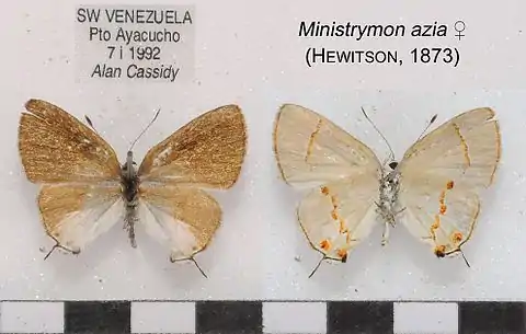 - Ministrymon azia (Hewitson); Bridges, 1994: VIII.57; Lamas, 2004: 132.