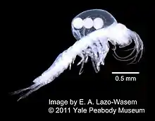 - Taramelli, E. (1954). La posizione sistematica dei Termosbenacei quale risulta dallo studio anatomico di Monodella argentarii Stella.- Monitore Zoologico Italiano 62(1): 9–27.