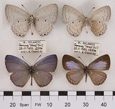 - Cassidy, A.C., 2003. New information on lycaenid butterflies of the South-East Asian Islands. Transactions of the Lepidopterological Society, Japan 54(2): 73–82. pdf. Reference page.