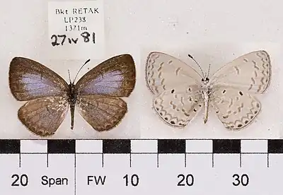 - Eliot, J. N. & Kawazoé, A. 1983. Blue butterflies of the Lycaenopsis group. British Museum (Natural History), London. ISBN 0-565-00860-9. Reference page.
