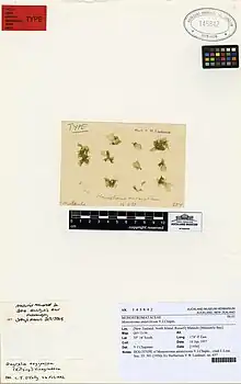 - Type: "Type specimen in herb. Auckland Inst. from Matauhi Bay (Russell)".