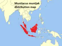Subspecies: M. m. annamensis – M. m. aureus – M. m. bancanus – M. m. curvostylis – M. m. grandicornis – M. m. malabaricus – M. m. muntjak – M. m. nainggolani – M. m. nigripes – M. m. peninsulae – M. m. pleicharicus – M. m. robinsoni – M. m. rubidus – M. m. vaginalis