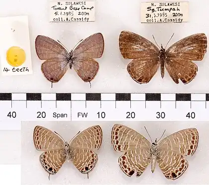 - Cassidy, A.C., 1990. On Nacaduba and allied genera (Lepidoptera, Lycaenidae) from the Sulawesi Region. Tyô to Ga, 41(4): 227–241. PDF. Reference page.