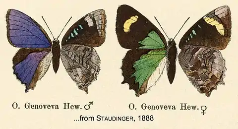 - Ogyris genoveva Hewitson, [1854] 5 : pl. 48, text; Waterhouse, 1941: 234.