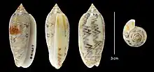 - Petuch, E.J. & Sargent, D.M. 1986. Atlas of the living olive shells of the world. xv + 253 pp., 39 pls. Reference page. (See page 126, plate 20, fig. 19–22.)