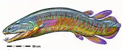 - Long, J.A. 2001: On the relationships of Psarolepis and the onychodontiform fishes. J. Vert. Paleontol. 21: 815–820.