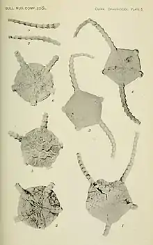 Full article (PDF) Reference page. - Clark, H.L. 1917. Reports on the scientific results of the Expedition to the Tropical Pacific in charge of Alexander Agassiz, on the U.S. Fish Commission Steamer Albatross, from August, 1899, to march, 1900, Commander Jefferson F. Moser, U.S.N., commanding. XVIII. Reports on the scientific results of the expedition to the eastern tropical Pacific in the charge of Alexander Agassiz by the U.S. Fish Commission steamer Albatross, from October 1904 to March 1905, Lieut. Commander L.M. Grant U.S.N. commanding. XXX. Ophiuroidea. Bulletin of the Museum of Comparative Zoology. 61(12): 429-453, pls I-V. BHL Reference page.