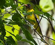 Oriolus brachyrynchus brachyrynchus, Kakum NP, Ghana