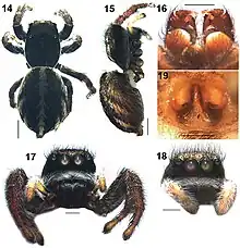 - Caleb, J.T.D., Sajan, S.K. & Kumar, V. 2018. New jumping spiders from the alpine meadows of the Valley of Flowers, western Himalayas, India (Araneae, Salticidae). ZooKeys 783: 113-124. DOI: 10.3897/zookeys.783.25225 Reference page.