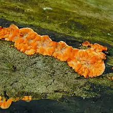 Phlebia radiata. Rondeau Prov. Park, Blenheim, Kent County, Ontario.