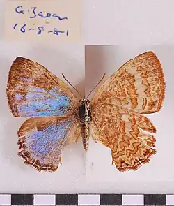- Corbet, A. S., 1948. Revisional Notes on Oriental Lycaenidae: 1. Proc. R. ent. Soc Lond. (B)17(7/8):93-97. Reference page.