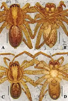 - Zhang, H., Jäger, P. & Liu, J. 2019. Establishing a new species group of Pseudopoda Jäger, 2000 with the description of two new species (Araneae, Sparassidae). ZooKeys 879: 91-115. DOI: 10.3897/zookeys.879.35110