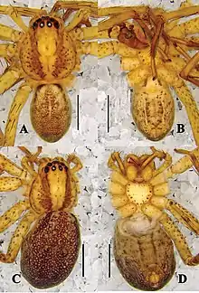 - Zhang, H., Jäger, P. & Liu, J. 2019. Establishing a new species group of Pseudopoda Jäger, 2000 with the description of two new species (Araneae, Sparassidae). ZooKeys 879: 91-115. DOI: 10.3897/zookeys.879.35110