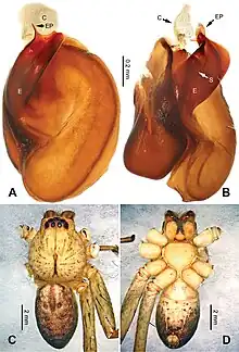 - Jiang, T.Y., Zhao, Q.Y. & Li, S.Q. 2018: Sixteen new species of the genus Pseudopoda Jäger, 2000 from China, Myanmar, and Thailand (Sparassidae, Heteropodinae). ZooKeys 791: 107–161. DOI: 10.3897/zookeys.791.28137 Reference page.