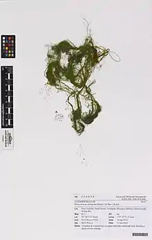 - Boedeker, C., Leliaert, F. & Zuccarello, G.C. 2016. Molecular phylogeny of the Cladophoraceae (Cladophorales, Ulvophyceae) with the resurrection of Acrocladus Nägeli and Willeella Børgesen, and the description of Lurbica gen. nov. and Pseudorhizoclonium gen. nov. Journal of Phycology 52(6): 905–928. DOI: 10.1111/jpy.12457 Reference page.