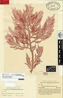 - Agardh, J.G. 1852. Species genera et ordines algarum, seu descriptiones succinctae specierum, generum et ordinum, quibus algarum regnum constituitur. Volumen secundum: algas florideas complectens. Part 3, fasc. 1. pp. 701–786. Lundae [Lund]: C.W.K. Gleerup. BHL Reference page. : 773