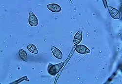 spores of the rice blast fungus (Pyricularia oryzae) - (Click on image to enlarge it)