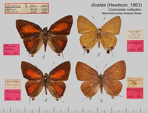 - Deudorix dioetas Hewitson, [1863]: 21, pl. 7, fig. 14 (♂), nec figs 13, 15 (♀ ?=ribbei).