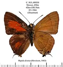 - Rapala dioetas (Hewitson); Fruhstorfer, 1912: 262. Partim; Vane-Wright & de Jong, 2003: 136.