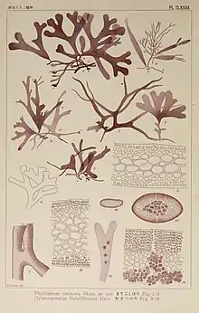 - Okamura, K. 1930. Icones of Japanese algae. Vol. VI pp. 19–38 (39) (English, 28–39 misnumbered 21–30), 19–37 (38) (Japanese), Plates CCLXI–CCLXX. Tokyo: published by the author. Reference page. : 31 [as 23], pl. CCLXVII [267]