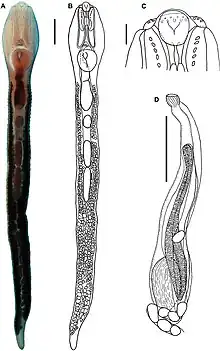- López-Caballero, J., Mata-López, R. & Pérez-Ponce de León, G. 2019. Molecular data reveal a new species of Rhopalias Stiles & Hassall, 1898 (Digenea, Echinostomatidae) in the Common opossum, Didelphis marsupialis L. (Mammalia, Didelphidae) in the Yucatán Peninsula, Mexico. Zookeys, 854: 145–163. DOI: 10.3897/zookeys.854.34549 Reference page.